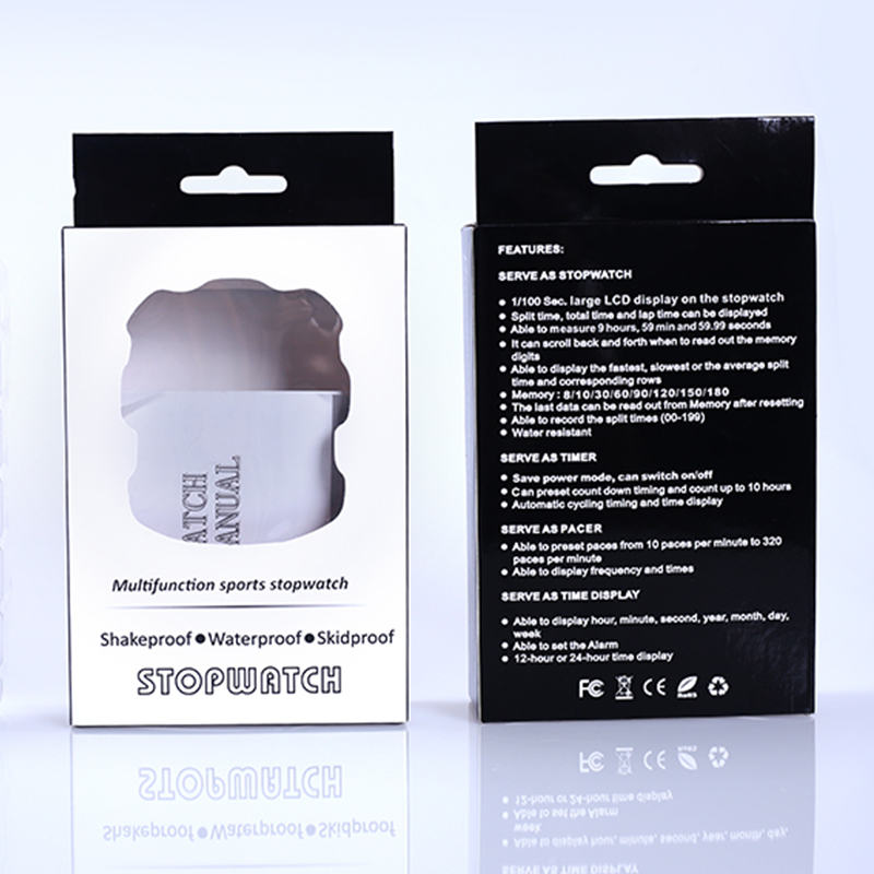 Three rows of large screen display 60 1/100 memory stopwatch You can choose the fastest / slowest / average number of cycles and time, The piecewise timing function. The data can still be read in memory memory after the data is zero Memory storage can be rolled back and forth The metronome per minute up to 320 shooting and alarm The length of the timer is up to 10 hours Can set calendar, week, clock, 12/24 hours and alarm clock. Latest earthquake proof, waterproof, antiskid structure design The latest power saving mode: switchgear can be set at will Batch size: 50pcs, and can be mixed into 50 purchases with multiple styles.